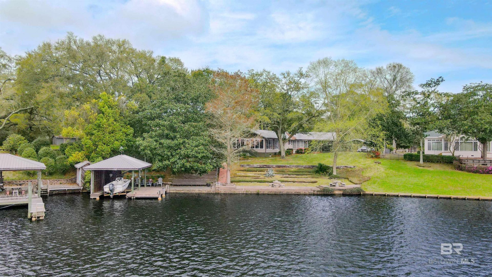 Located on the scenic waters of Fowl River, this waterfront property offers 3,155 square feet of living space with a versatile layout and private guest accommodations. The property is situated in Flood Zone X and is well suited for those who enjoy spending time on the water. The main residence features 3 bedrooms and 3 bathrooms, along with multiple living areas including a spacious living room, dining area, and dedicated office. The living room showcases beautiful Heart Pine floors and a wood-burning fireplace, creating a warm and inviting space to gather. The kitchen features granite countertops, a gas stove, and ample cabinet space, and flows easily into the main living and dining areas, making it ideal for everyday living and entertaining. The primary suite offers a spacious retreat, complete with his-and-her closets, a double vanity in the bathroom, and a separate sunroom that provides a bright space to relax or enjoy a private sitting or office area. Outdoor living and boating access are a true highlight of the property. A private dock with a covered boat slip and lift provides convenient access to the water, making it easy to enjoy boating, fishing, and exploring the surrounding waterways. Fowl River offers direct access to Mobile Bay, Mississippi Sound, and the Gulf of Mexico, allowing for endless adventures on the water right from your own backyard. A large screened-in porch overlooks the riverfront setting and provides a comfortable place to relax after a day on the water. A separate guest house with a studio-style layout and kitchenette provides additional flexibility for visitors or extended family. With generous living space, guest accommodations, and excellent boating access, this property offers a great opportunity to enjoy the waterfront life style along Fowl River. Buyer to verify all information during due diligence.