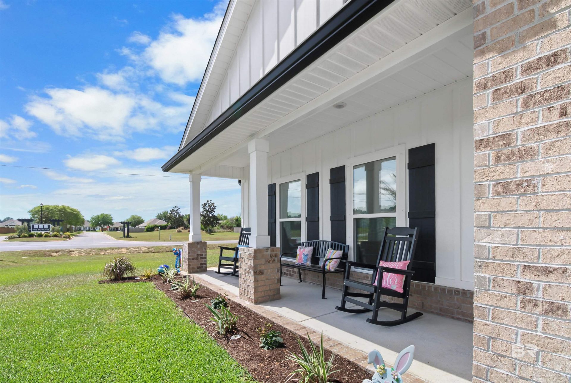Welcome home to a place where everyday living feels like a retreat. This beautifully crafted new property in Elberta sits on a premium corner lot with peaceful pond views, offering added privacy and a scenic backdrop that enhances the coastal lifestyle.From the moment you step inside, soaring 9 foot ceilings, custom finishes, and thoughtfully designed details create an open, airy, and welcoming atmosphere. Natural light dances across clean lines and custom lighting, highlighting a modern design that feels both elevated and effortless. This smart home features a true split floor plan designed for comfort, functionality, and privacy.The heart of the home is a stylish kitchen with a striking backsplash, perfect for gathering with family and friends. With no carpeting throughout, the home offers a clean, seamless flow that is both beautiful and easy to maintain. An electric fireplace adds warmth and ambiance, creating the perfect setting for cozy evenings and relaxed entertaining.Step outside to your covered back porch and unwind in your private hot tub while overlooking tranquil pond views. Added concrete, palm trees, and thoughtful outdoor upgrades create a setting that feels like a permanent vacation. Practical features such as gutters, a widened driveway, and epoxy garage floors add durability, polish, and everyday convenience.Perfectly located in Elberta, you are just miles from shopping, dining, and the sugar white sandy beaches of Gulf Shores. Whether you are starting your mornings with coffee under the palms or ending your days with sunset breezes by the water, this home offers the lifestyle you have been dreaming of.This is more than a home. It is coastal living, reimagined. Buyer to verify all information during due diligence.