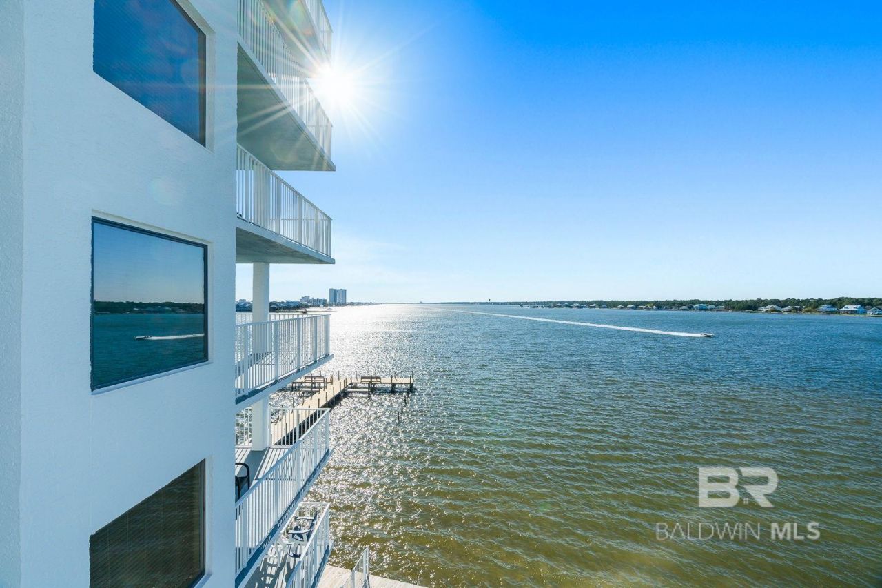 Discover Gulf Shores at its finest at Compass Point on Little Lagoon. With one of the best locations in the building, this updated fourth-floor waterfront residence captures inspiring views of Little Lagoon and stunning sunsets over the water from the living area, primary bedroom, and private balcony. This is a relaxed coastal setting that is hard to find; Compass Point is known for its unique location that offers direct lagoon access, all while being just moments from the sugar-white beaches and shores of the Gulf. Inside, the layout is both functional and inviting, with an open living and dining area with bar seating that flows out toward the water, making the most of the amazing view. The two-bedroom, two-bath configuration allows for flexibility, whether used as a primary residence, second home, or rental investment. Recent updates to the condo include a new ultra-quiet Bosch dishwasher and stainless refrigerator in 2024. Additionally, the HVAC was replaced in 2020, and the ducts were cleaned in 2023, along with other updates, such as a new king mattress. The community amenities further enhance the appeal: a lagoon-front pool, newly renovated indoor pool, private fishing pier, boat launch, first-come boat slips, grilling area, and a private sandy beach area. Whether you enjoy sunny beach days, boating, kayaking, fishing, or simply relaxing by the water at sunset, everything is right at your doorstep - and it's just one block to the beach! Located on the quieter west end of Gulf Shores, Compass Point offers laid-back coastal surroundings while remaining just minutes from the best dining, shopping, and entertainment. And Compass Point has never looked better! Recent community upgrades - a remodeled indoor pool, building waterproofing and painting, and resurfacing of all walkways and balconies - make this waterfront destination truly shine! This is a strong opportunity to own a Gulf Coast condo that combines lagoon-front tranquility and easy proximity to the beach.