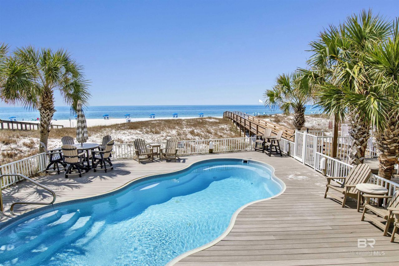 Gulf front with strong rental history. Welcome to coastal luxury at its finest! Nestled in Cottages at Romar community in Orange Beach, this expansive 10-bedroom, 9.5-bathroom home offers the ultimate in space, comfort, and style?perfect for large families, vacation rentals, or group retreats. Step inside and be greeted by gulf-inspired design elements, high ceilings, and abundant natural light throughout. The open-concept living area is an entertainer's dream, flowing seamlessly into a gourmet kitchen with premium appliances, granite countertops, and oversized island seating. Each bedroom is thoughtfully designed for privacy and relaxation, many with en-suite bathrooms, giving every guest a luxurious escape. Enjoy multiple balconies with sweeping Gulf views, perfect for morning coffee or evening sunsets. The home also features brand new hardwood floors, freshly painted walls, designer finishes, and ample storage space across its spacious layout. On the second level guest can enjoy a separate den and kitchenette. Located in a beachfront community, residents have exclusive access to a private beach boardwalk, resort-style pool, and lush landscaping?all just steps from the sugar-white sands of Orange Beach. Whether you're seeking a full-time residence, investment property, or vacation home, this remarkable home checks every box. Currently being used as a vacation rental with Southern Vacation Rentals. Currently on the books for 2026: $315,362. Past Rental History- 2025: $295,282 and for 2024: $333,748. Buyer to verify all information during due diligence.