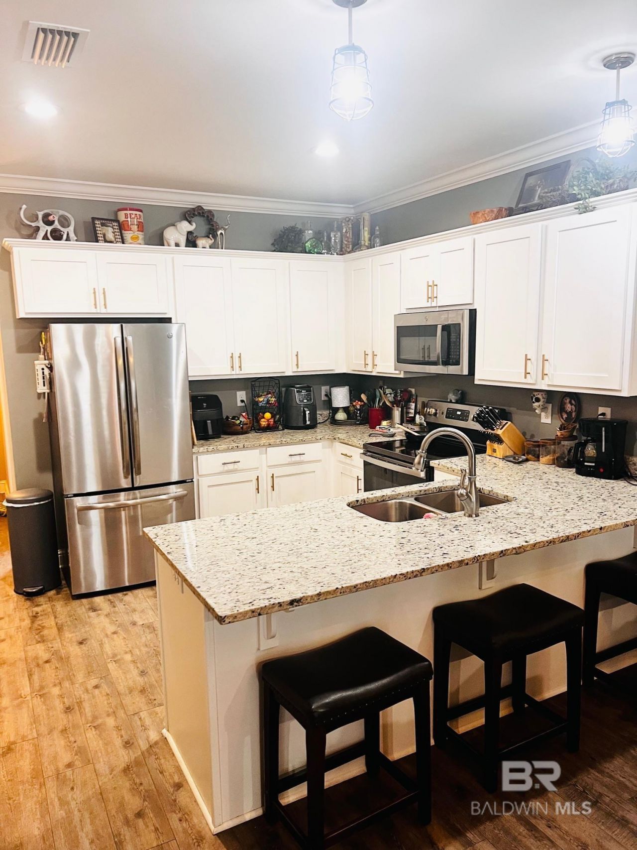 Welcome to Victoria Place in the heart of Foley, Alabama where comfort, style and convenience come together. Just minutes away from Gulf Shores and Orange Beach beautiful white beaches!With this 3 bedroom and 2 bath condo the kitchen features bright white cabinetry, granite counter tops and a spacious island, with an open concept design.Primary bed/bath combo with the two additional bedrooms offer flexibility for guest or a home office. Located close to great shopping, multiple restaurants, boat ramp 10 minutes away at the Launch on co rd. 4.Weather you are looking for a primary residence, second home, investment opportunity this unit is a must see. Buyer to verify all information during due diligence.