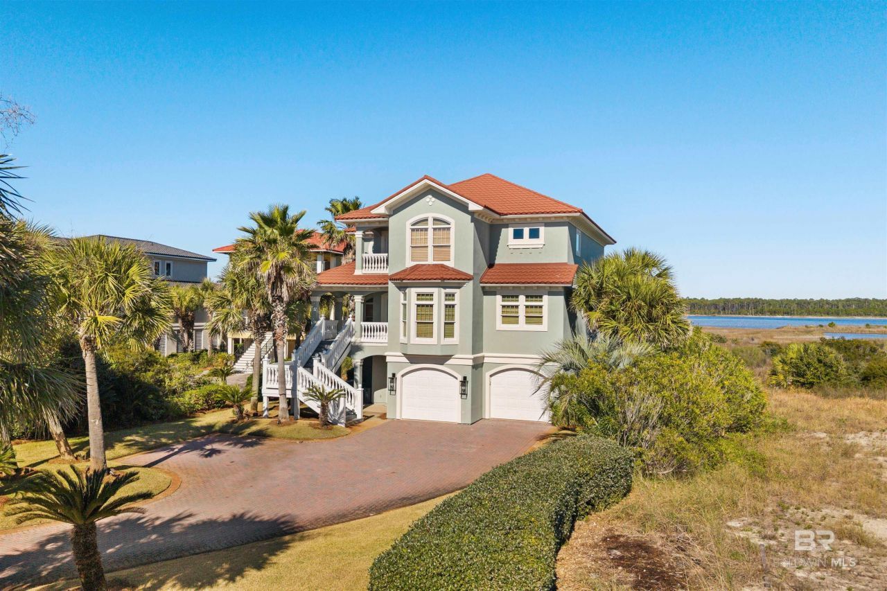 Nestled between the end of West Beach Blvd and the Bon Secour National Wildlife Refuge, this elegant 4BR/4.5BA home is located in a small, serene community bordered by the emerald waters of the Gulf with sugar white sand to the south and the gorgeous 2480 acre Little Lagoon to the north. The beach access, pool, gazebo, fishing pier, tennis/pickleball and nature preserve are all just a short walk. When you're not strolling along the beach, meeting neighbors at the community pool, playing tennis/pickleball, or fishing in the lagoon, you'll enjoy the exceptional amenities of this spacious home overlooking the Lagoon and the private pool. An elevator provides easy access from the double garage to the top floor, making every level effortlessly accessible. The home features crown molding, granite countertops, tasteful furnishings, NEW HVAC for main floor and a private pool. Two primary suites?one on the main level and one on the second floor?offer luxurious bathrooms and private comfort for owners and guests alike. The ground floor includes a dedicated ping-pong room, perfect for kids or rainy-day fun. Home sits on a cul de sac with balconies on both sides providing stunning views of the Gulf and the Lagoon. Whether you're seeking a personal beach escape or an investment opportunity, this home allows short-term rentals, giving you the flexibility to offset ownership costs as much or as little as you choose. Buyer to verify all information during due diligence.